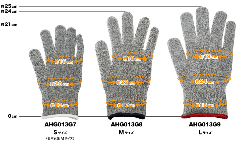 *形状見本(各サイズ左手)をご確認いただきたい場合は、こちらからお問い合わせ下さい。